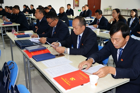 型材节水事业部喀什中天党支部书记董峰发言讲到,中天党支部努力做到党建工作与车间工作紧密结合,为生产工作保驾护航,疏通一线职工的思想梗阻,有力促进了管理升级,形成了和谐的生产环境。