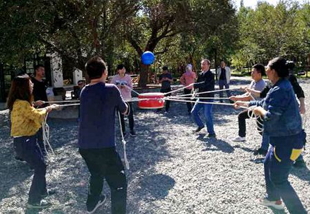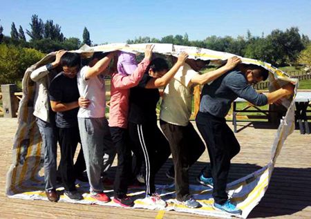 “齐眉棍”项目教会我们要共同努力,服从统一的指挥,最终实现目标;“击鼓颠球”项目教会我们干工作要能够沉下心来,承受得住失败的挫折,越挫越勇,持之以恒,最终成功地完成任务;“风火轮”项目教会我们在服从指挥、一丝不苟的工作之余,还要学会相互信任和理解;“袋鼠运瓜”和“拔河比赛”更教会我们干工作要团结协作,要持之以恒,更要有梦想。