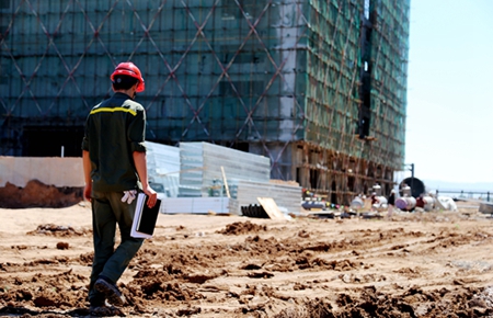 一辆辆挖掘机你来我往,一台台起吊机高高矗起紧张作业,在烈日的照耀下,仿佛整个世界都在燃烧,无论在室内还是户外,地面或是高空,都有建设者们忙碌的身影。看!黝黑的肤色、被汗水浸透的工装、沾满泥土的鞋子、匆匆的步伐......