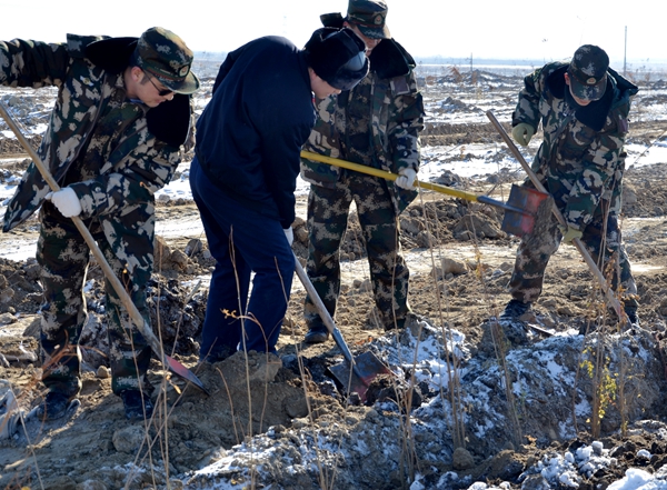 遥望远处,能源公司电石厂渣场空地的每个树埂上迎风飘动着“mg电玩娱乐在线网址”的彩旗,身穿着“mg电玩娱乐在线网址”工服的能源公司干部职工们秉承“不怕困难,勇于创新,敢于担当,每战必胜”的企业精神,踩着皑皑的白雪,顶着冽冽的寒风,三人一组,五人一群,通力协作,你铲土,我扶树,配合默契,劲往一处使、汗往一处流,干劲十足,一片热火朝天的热闹景象。
