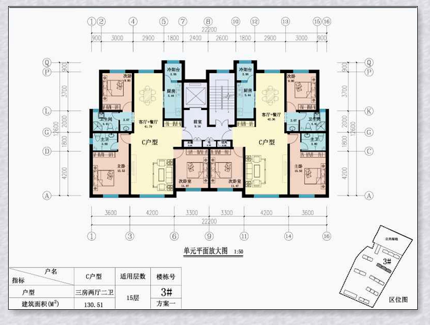 130.51平米,三房两厅二卫