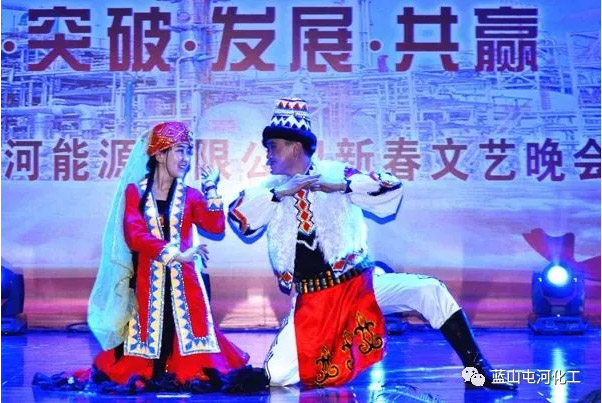舞蹈《能源欢歌》作为晚会的开篇节目,以鼓、伞、扇、帕、笛等民间元素为题材,热闹的展现了能源公司青年员工的热情;音诗画舞《能源赞歌》,讲述了一群怀揣梦想的莘莘学子齐聚到屯河能源,开始人生第一个旅途,通过培训分配入岗,为企业发展添砖添瓦,共同经历的风雨历程;舞蹈《工人节奏》,生动体现了能源人在项目建设和生产经营过程中的顽强斗志;歌舞《在路上》,情景交融,寓意深刻,憧憬和描绘了企业未来发展的美好愿景;蒙族舞蹈《蓝印》节奏欢快,形似万马奔腾,将整场晚会推向了高潮。