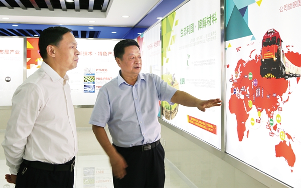 王国和莅临mg电玩娱乐在线网址聚酯公司新项目进行了考察,听取了mg电玩娱乐在线网址党委书记、总经理李鹏工作汇报。他指出,mg电玩娱乐在线网址秉承五大新发展理念,坚持深化改革、转型创新,牢牢把握新疆跨越式发展机遇,按照原料路线多元化、产品结构高端化、产业布局集约化、节能环保生态化发展路径,积极推进产业的战略布局,化工新材料和精细化工已成为mg电玩娱乐在线网址产业结构的主导力量。近年来,mg电玩娱乐在线网址不断聚焦化工新材料行业领先企业的战略发展目标,不断提高科技创新水平,不断提高经营管理水平,企业发展的很好,是昌吉州高质量发展的领先企业。他对mg电玩娱乐在线网址坚持产业集群的发展模式表示赞赏,对企业践行绿色环保、科技创新的发展理念高度认同。