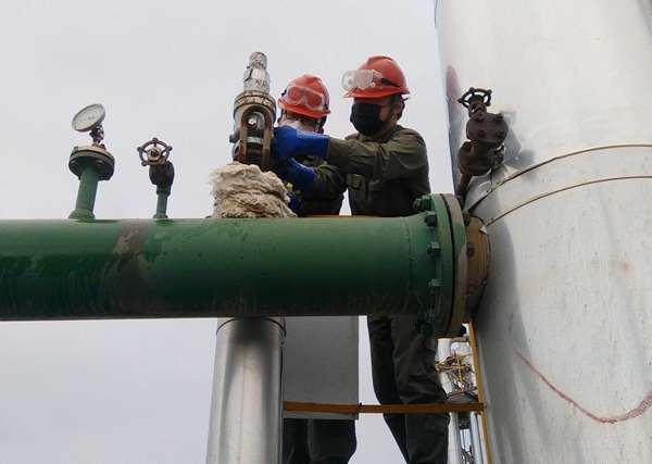 BDO厂甲醛循环塔塔盘是BDO厂本次检修的重点项目,按照检修计划苏尔寿厂家技术人员到厂指导安装,但因疫情原因,厂家技术人员无法到厂,公司组织选拔抽调3名设备技术骨干,顶着烈日配合BDO厂实施甲醛循环塔塔盘更换,保证了甲醛塔检修的顺利完成。