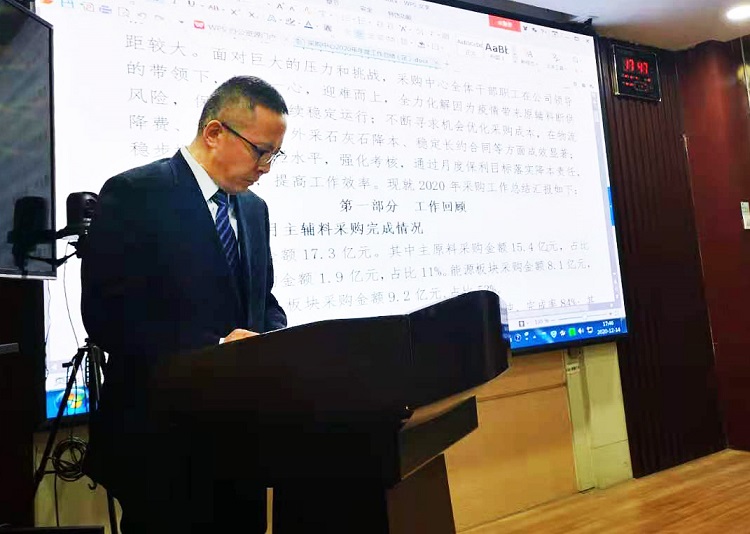 近日,采购中心组织召开了2020年度采购中心总结暨表彰大会。公司总经理李鹏、副总经理赖勇、总调度长张淮林和采购中心全体职工参加了本次会议。