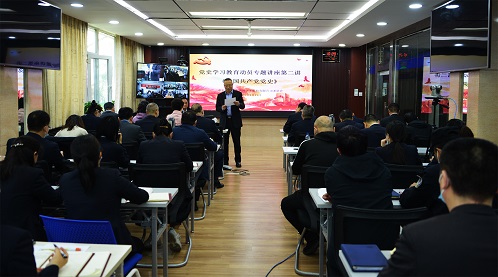 为贯彻公司党委《开展党史学习教育的实施方案》整体部署,推动公司《党史学习教育学习计划》和《党史学习教育专题讲座计划》具体安排,落实《2021年“双培养”工作计划》,2021年4月17日,mg电玩娱乐在线网址党委再次邀请昌吉州党校副校长、高级讲师陈东运老师做主题为《中国共产党历史发展与启示》的讲座。讲座以视频形式开展到各党总支、党支部,设立总公司1个主会场、6个分会场。公司党员干部、发展对象、入党积极分子等近240余人参加了此次讲座。