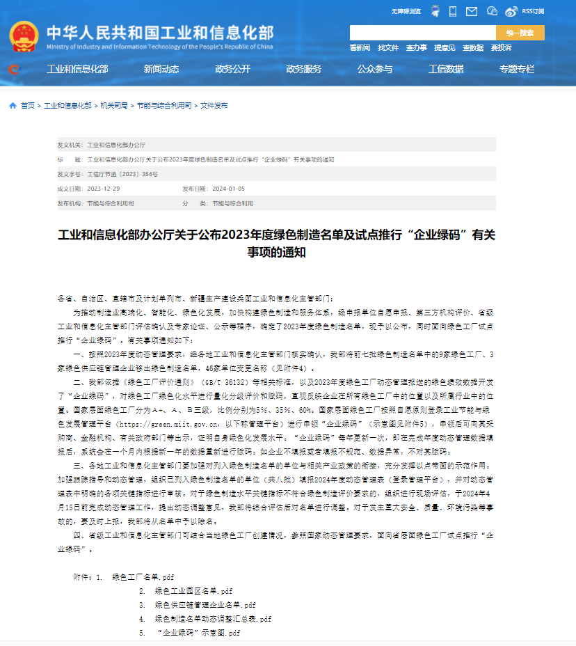 2024年1月5日,工信部发布《关于公布2023年度绿色制造名单的通知》,新疆mg电玩娱乐在线网址科技股份有限公司喜获“绿色供应链管理企业”称号。