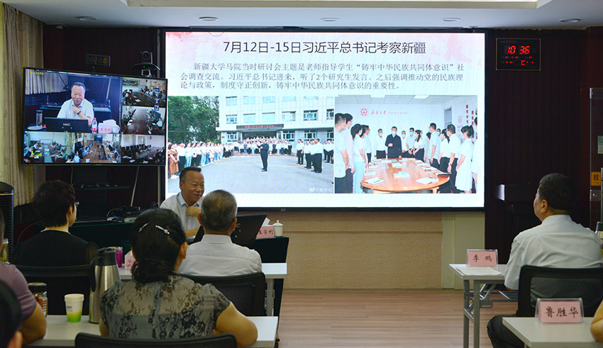 讲座上,讲师深刻阐述了习近平总书记视察新疆工作的重大意义,回顾了第二次中央新疆工作座谈会以来新疆工作取得的重大成就,深入分析解读了新时代党的治疆方略及推动新疆社会稳定长治久安的战略部署和重大举措;讲师强调,要加强党的全面领导为社会稳定和长治久安提供坚强政治保证,以高度的政治自觉、思想自觉、行动自觉,抓好学习贯彻习近平总书记视察新疆的重要讲话指示精神。